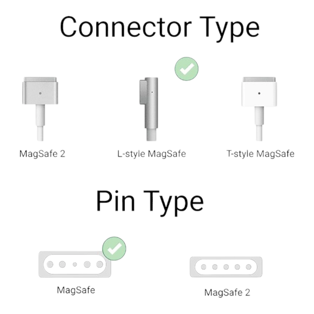 - Connector type: Magsafe 1 | Shape: Magnet Pin L shape